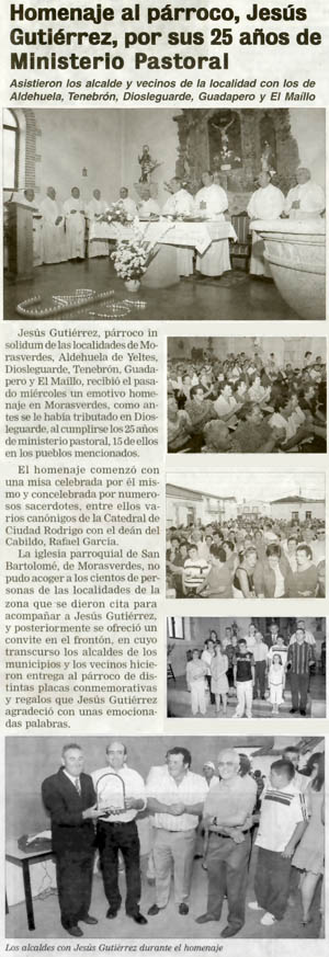 Homenaje al párroco, Jesús Gutiérrez, por sus 25 años de Ministerio Pastoral.